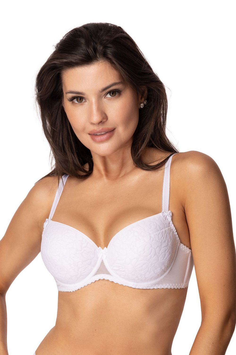 Biustonosz Laila to zmysłowy push-up, którego miseczki pokrywa kwiecista koronka. Usztywniane miseczki z wyjmowanymi wkładkami delikatnie unoszą i modelują biust, tworząc piękny dekolt. Gładkie panele boczne doskonale układają się pod ubraniem, a regulowane, nieodpinane ramiączka zapewniają stabilne podtrzymanie.