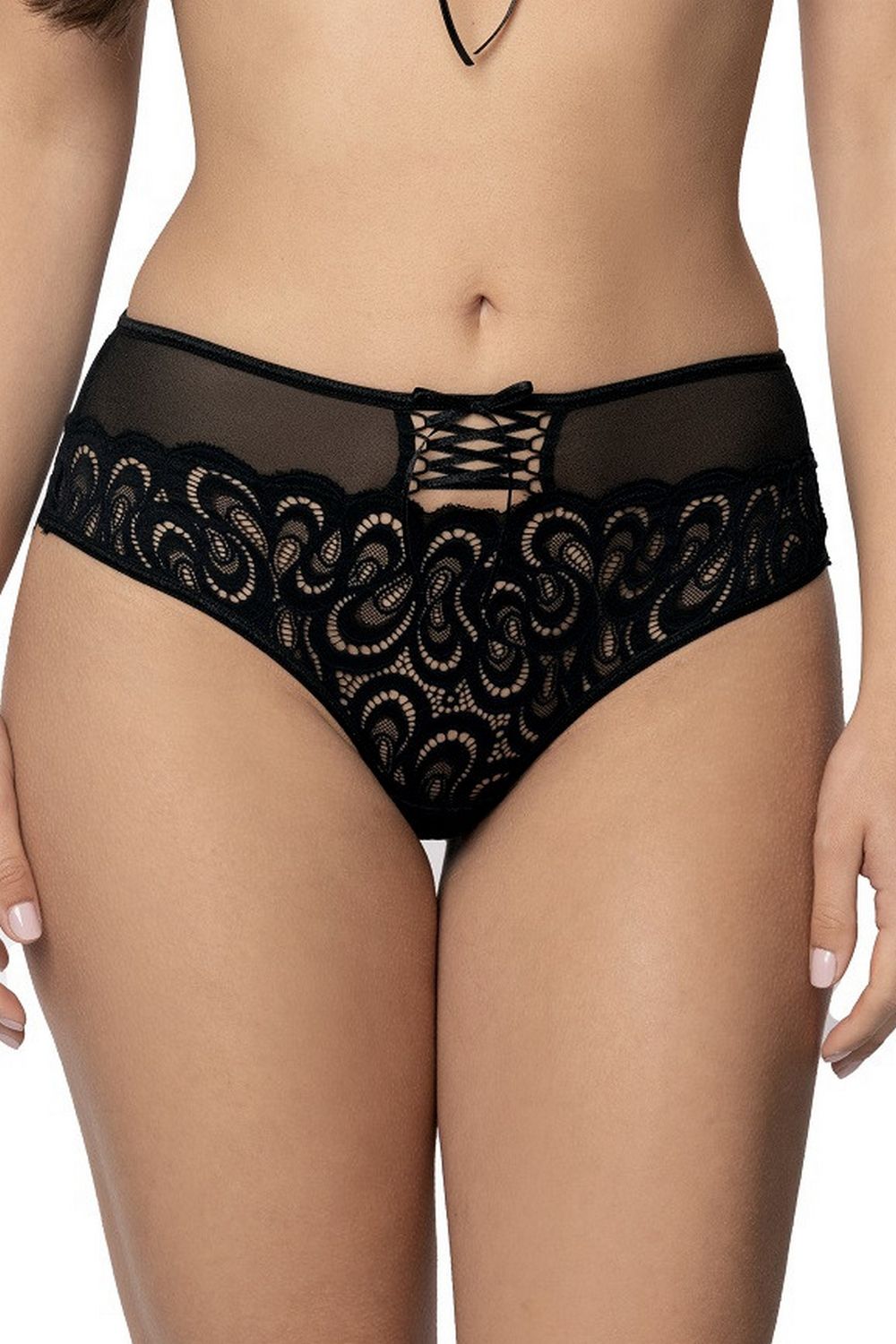Figi Termena to majteczki wykonane z eleganckiej koronki. Z przodu znajdują się ozdobne sznurowania, które dodają całości odrobinę pikanterii i przyciągają wzrok.
